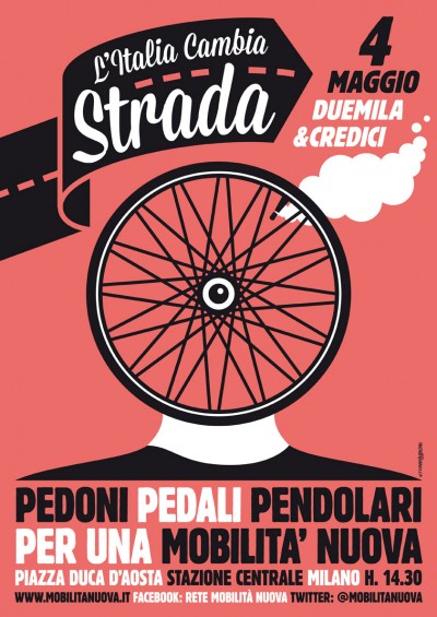 Sabato 4 maggio circa 150 associazioni italiane parteciperanno alla manifestazione di Rete per una Mobilità Nuova, una organizzazione che come suggerisce il nome si occupa di mobilità in città e che sta promuovendo riflessioni e dibattiti sulla possibilità di superare il modello attuale basato sulle automobili per realizzarne uno più sostenibile, incentivando gli spostamenti a piedi, in bicicletta e con il trasporto pubblico locale e la rete ferroviaria. La marcia di sabato partirà dalla Stazione Centrale di Milano e raggiungerà Piazza del Duomo. All’iniziativa partecipano, tra gli altri, Legambiente, Touring Club Italiano, Coldiretti e Libera.