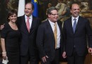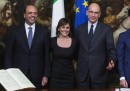 Alle 20 di venerdì 3 maggio si è tenuta a Palazzo Chigi la cerimonia del giuramento dei viceministri e dei sottosegretari alla presenza del presidente del Consiglio Enrico Letta e del vicepresidente Angelino Alfano. La cerimonia è stata introdotta dalla formula di rito, pronunciata dal Sottosegretario alla Presidenza del Consiglio dei ministri Giovanni Legnini, ed è proseguita con la sfilata e il giuramento dei 40 viceministri e sottosegretari: diverse facce nuove e parecchi ripescati, che potete vedere e di cui potete leggere le storie qui.