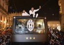 Domenica 5 maggio la Juventus ha vinto il suo ventinovesimo Scudetto battendo il Palermo in casa, per 1 a 0. Il numero degli Scudetti è contestato dalla società e da parte dei tifosi juventini, dopo che due vittorie sono state revocate dalla giustizia sportiva a seguito delle inchieste cosiddette “Calciopoli”. Dopo una serie di polemiche la scorsa estate, la maglia da gara non ha nessuna stella sopra il simbolo della società (le due stelle sono coperte da una toppa) e porta, sotto lo stemma ufficiale della squadra, la scritta “30 sul campo”. La stella di colore oro è assegnata alla squadra che vince 10 campionati e in Italia solo la Juventus, dalla vittoria del campionato 1981-1982, ha diritto ad indossarne due (l’Inter e il Milan, al secondo posto per numero di scudetti vinti, ne hanno 18).