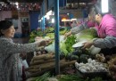 Fotografie tra merci e cesti di frutta e verdura, dove molti si concentrano sui prezzi delle merci in vendita (salgono, anche lì)