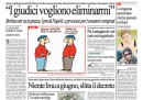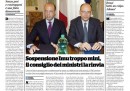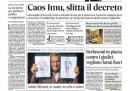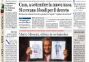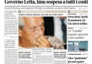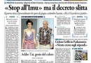 Il rinvio della decisione del governo sull’IMU, che era prevista nel consiglio dei ministri di ieri ma è stata rinviata per definire meglio il decreto che dovrebbe spostare a settembre il pagamento dell’imposta sulle prime case, è in apertura sulla maggior parte dei giornali di oggi. Repubblica, l’Unità e il Giornale titolano invece sulla manifestazione del PDL sulla giustizia prevista per sabato a Brescia, il Secolo XIX segue ancora le indagini sull’incidente al porto di Genova, e il Manifesto si occupa della riunione della Costituente dei beni comuni presieduta da Stefano Rodotà.