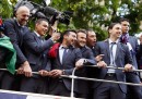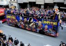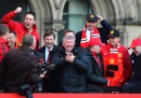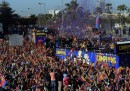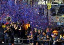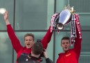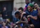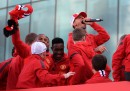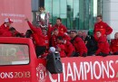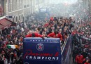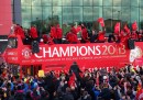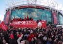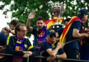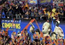 Oggi si sono svolti praticamente nelle stesse ore tre simili spettacoli in tre grandi città europee, Barcellona, Parigi e Manchester. Le squadre di calcio di Barcelona, Paris St. Germain e Manchester United hanno attraversato le rispettive città su un autobus scoperto per salutare i tifosi e festeggiare le avvenute vittorie dei tre maggiori campionati nazionali, tutte e tre con anticipo rispetto all’ultima giornata (ieri Paris St. Germain e Barcelona, la settimana scorsa Manchester United). A Parigi ci sono stati a un certo punto anche dei fronteggiamenti piuttosto tesi di tifosi e polizia al Trocadero.