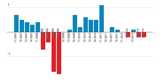La Francia è entrata ufficialmente in recessione, avendo ottenuto per due trimestri consecutivi una diminuzione del Prodotto Interno Lordo. Mercoledì 15 maggio l’Istituto nazionale di statistica francese (Insee) ha pubblicato i dati relativi al primo trimestre del 2013: il Pil del paese è diminuito dello 0,2 per cento. La stessa cosa era accaduta nell’ultimo trimestre del 2012 (il dato è stato rivisto e corretto oggi, passando da meno 0,3 a meno 0,2 per cento).