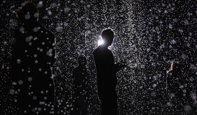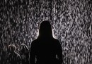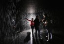 “Rain Room” è il titolo dell’ultimo lavoro di Random International, collettivo di artisti che si occupa di interaction design, cioè dell’interazione tra esseri umani, sistemi meccanici e informatici. L’installazione è esposta al Museum of Modern Art (MoMA) di New York dal 12 maggio al 28 luglio 2013. Si tratta di una grande stanza dove la pioggia scende ininterrottamente: i visitatori però possono passarci attraverso senza essere bagnati. Una rete di sensori rileva in ogni istante la posizione del corpo che si muove, disattivando la caduta dell’acqua esattamente nel punto dove si trova la persona e giusto il tempo per permetterne il passaggio.