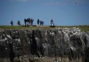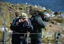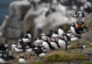 Giovedì 16 maggio, come ogni cinque anni in questo periodo, è iniziato il censimento delle pulcinelle di mare (o fratercule), che ogni estate migrano verso le Isole Farne per riprodursi. Le Farne sono un arcipelago di piccole isole nel tratto di costa inglese fra Newcastle e Edimburgo, e le fratercule volano qui per la grande quantità di cibo disponibile e la quasi totale assenza di predatori. Il censimento è un’occasione molto attesa dagli abitanti del luogo, poichè di norma questi uccelli sono molto timidi. Nelle foto si vedono anche alcuni ranger mentre tirano fuori le fratercule dalle tane per contarle; questi uccelli scavano infatti delle gallerie lunghe fino a due metri dove poi depongono le uova. L’ultimo censimento del 2008 ha registrato 36.500 coppie di fratercule, ma i ranger stimano che il loro numero potrebbe essere diminuito a causa dell’inverno molto rigido di quest’anno.