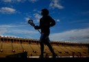 Tra le migliori foto sportive della settimana ce n’è una di una sciatrice letteralmente fuoripista: Anna Segal, un’atleta australiana fotografata poco lontano da Sydney. E per continuare con le foto inusuali ci sono cavalli fotografati da un lato di solito non molto celebrato e un incontro di lotta tra un americano e un iraniano nella stazione di Grand Central (una manifestazione per chiedere di non escludere la lotta dalle prossime Olimpiadi). Infine una bella foto di un lanciatore di baseball, una delle silhouette dei partecipanti alla mezza maratona di Sydney e molte altre (tra cui una notevole mischia in mezzo alla porta durante una partita di hockey).