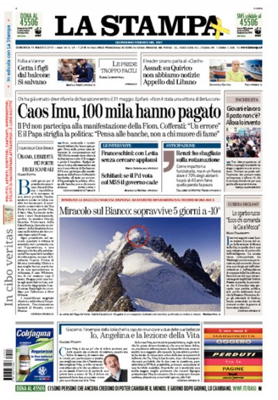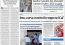 Le cose che continuano a dominare le prime pagine dei giornali sono le tasse, l’IMU, l’IVA, le dichiarazioni dei redditi: sia con le notizie sulle misure adottate dal governo, sia con quelle che forse adotterà, sia con i commenti a questo proposito di Letta, Alfano e i ministri. Ma ci sono altre storie che si fanno spazio: la manifestazione della FIOM a Roma, l’anniversario della bomba a Brindisi e quello del terremoto in Emilia Romagna, l’ultima giornata di campionato di Serie A.