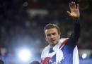 Ad applaudirlo, in tribuna, c’erano sua moglie Victoria Beckham e l’ex presidente francese Nicolas Sarkozy. Nonostante manchi ancora una partita alla fine della stagione, quella di ieri è stata probabilmente per Beckham l’ultima partita della carriera: il Paris Saint Germain giocherà l’ultima di campionato contro il Lorient il 26 maggio prossimo, ma Ancelotti ha spiegato che molto probabilmente Beckham non ci sarà dato che il campo del Lorient è in erba sintetica, con il fondo in plastica, e questo «potrebbe essere pericoloso per un calciatore di 38 anni».