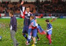 Ieri David Beckham ha giocato l’ultima partita della sua carriera di fronte ai propri tifosi del Paris Saint Germain, al Parco dei Principi di Parigi. Il Paris Saint Germain ha battuto il Brest per 3 a 1 e ha festeggiato la vittoria del campionato, decisa già la settimana scorsa. Beckham aveva annunciato il 16 maggio scorso di volersi ritirare a fine stagione, a 38 anni e dopo vent’anni di carriera. Uscendo dal campo, a sette minuti dalla fine, Beckham si è commosso, e ha abbracciato prima i suoi compagni di squadra – molti dei quali si erano tinti i capelli in suo onore di rosso, blu e bianco, come quelli della bandiera britannica (e francese) – e poi l’allenatore, Carlo Ancelotti.