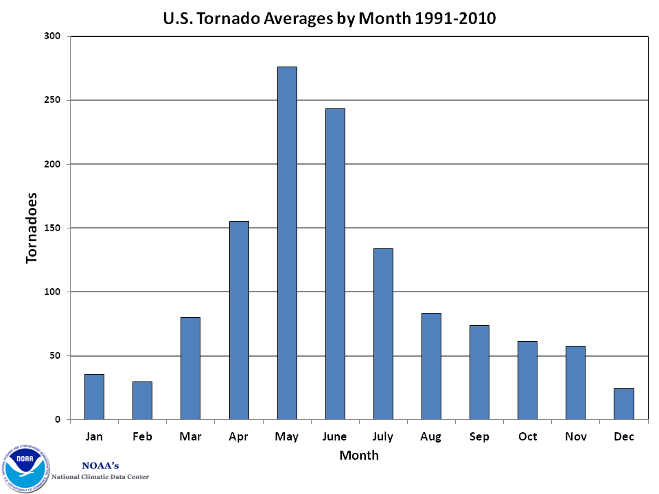 Sfortunatamente possiamo sapere con sicurezza che in una data zona ci sarà un tornado circa quindici minuti prima che tocchi terra. Come scritto sopra però, poiché i dati statistici ci aiutano a capire dove e in quale periodo si formano con più frequenza, in queste zone i temporali più violenti vengono costantemente controllati.
