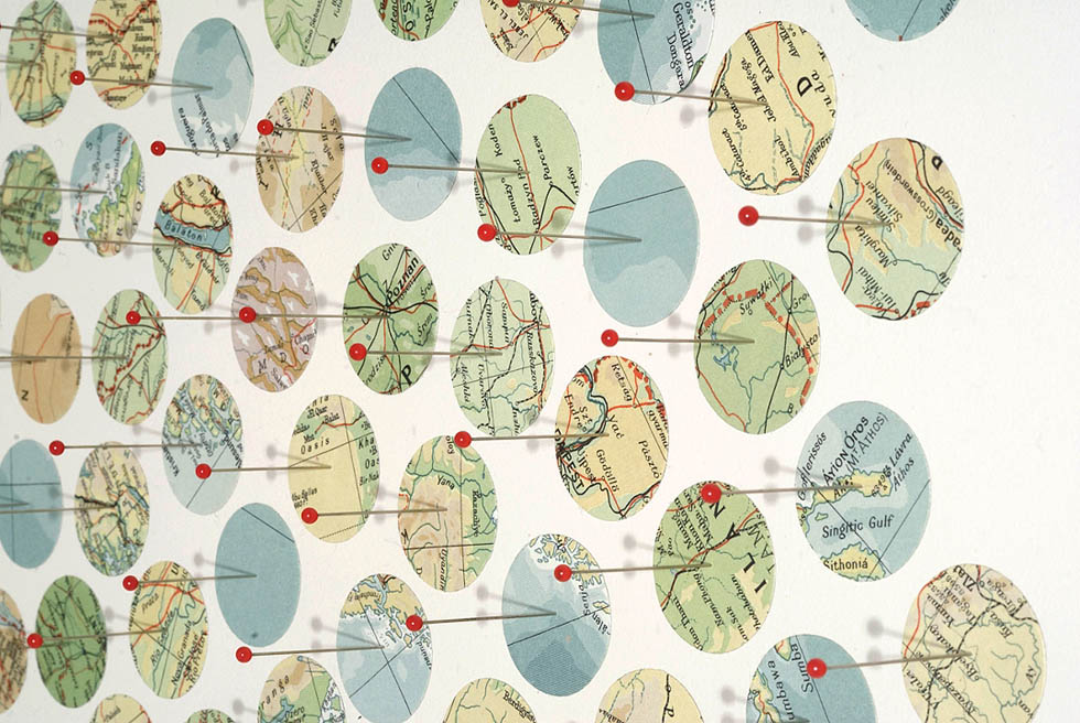 Shannon Rankin è un’artista statunitense che crea installazioni, sculture e collage utilizzando mappe, stradari e cartine.