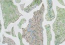 La sua idea è creare pattern costruiti come fossero sculture, ispirate alla biologia e alle forme geometriche presenti in natura: a volte taglia le mappe escludendone alcune parti, altre volte invece ne taglia alcuni elementi e crea composizioni e sequenze ordinate.