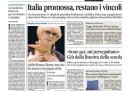 Sono due le notizie che si dividono le aperture dei giornali di oggi: la chiusura della procedura di infrazione per il deficit dell’Italia da parte dell’Unione Europea, che ha comunque richiamato il paese a mantenere l’attenzione sui conti, e le tensioni nel PD sull’approvazione di una mozione proposta dal deputato Giachetti, e poi bocciata dal voto della Camera, per cambiare la legge elettorale e tornare al Mattarellum. Il Manifesto e il Fatto fanno una scelta diversa, dedicando l’apertura al ricordo di Franca Rame.