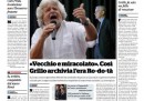 I giornali di oggi hanno in apertura notizie diverse: il Corriere della Sera, la Stampa, il Giornale e Libero titolano sulla decisione del governo di abolire il finanziamento pubblico ai partiti e sull’annuncio del PD di voler ricorrere alla cassa integrazione per i suoi dipendenti, Repubblica, il Secolo XIX e l’Unità si occupano della polemica sulle parole di Grillo su Rodotà, definito “ottuagenario miracolato dal web”, il Mattino intervista il segretario del PD Epifani, e il Messaggero apre con l’intenzione del governo di prorogare gli sgravi per le ristrutturazioni. I quotidiani sportivi aprono con l’offerta dell’indonesiano Thohir al presidente Moratti per acquistare l’Inter.