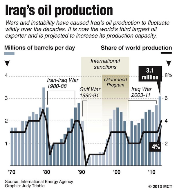 Come scrive il New York Times, i benefici con cui si sta avvantaggiando la Cina sul petrolio iracheno non sono necessariamente un male per gli Stati Uniti. Gli investimenti cinesi hanno garantito all’industria petrolifera dell’Iraq di crescere, e alla produzione di greggio di aumentare. Questo processo ha contribuito in qualche modo a proteggere il mercato mondiale da un’altra impennata del prezzo del petrolio, che era stata preventivata da molti dopo che i paesi occidentali, tra cui quelli europei, avevano deciso nel gennaio 2012 di imporre sanzioni molto dure per fermare l’esportazione di greggio dell’Iran.