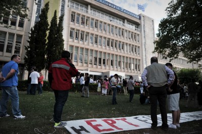 Dopo la chiusura della tv e della radio pubblica greca ERT, comunicata dal governo ieri, martedì 11 giugno, ci sono state numerose manifestazioni di protesta a sostegno dei 2.700 dipendenti che verranno licenziati. Fuori dalla sede della televisione, ad Atene, si sono riunite centinaia di persone e sono state inviate le forze dell’ordine in tenuta antisommossa, ma non ci sono stati scontri.