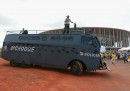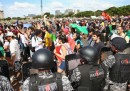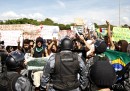 Per il terzo giorno consecutivo dall’inizio della Confederations Cup, il torneo di calcio tra squadre nazionali che si disputa l’anno prima dei Mondiali, ci sono state proteste e scontri tra la polizia e migliaia di manifestanti fuori dagli stadi del Brasile. Gli attivisti, che appartengono soprattutto a gruppi di studenti e lavoratori, sono contrari alle spese sostenute per l’organizzazione dei Mondiali del 2014. Tra gli striscioni portati dai manifestanti si leggeva: «Noi non vogliamo la Coppa del Mondo» e «Abbiamo bisogno di soldi per gli ospedali e le scuole». Le proteste sono anche legate all’aumento di circa il 7 per cento dei prezzi dei trasporti pubblici. Da circa una settimana, per questo motivo, ci sono cortei nelle più grandi città del paese.