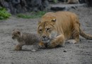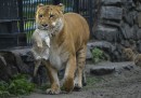 Un mese fa nello zoo di Novosibirsk, una città russa a nord del Kazakistan, è nata una femmina di leoligre, un animale nato dall’accoppiamento di un leone maschio e di una ligre, a sua volta un incrocio fra un leone maschio e una tigre femmina. La prima leoligre conosciuta al mondo era nata nello stesso zoo nel settembre del 2012. Le tigri e i leoni, accoppiandosi, possono dare vita a molti incroci e a esemplari sconosciuti, spiegati molto bene qui. Per esempio, un esemplare di ligre pesa in media molto di più di un leone e di una tigre, mangia il doppio e se è maschio non potrà generare figli. Se invece si accoppiano una tigre maschio e un leone femmina può nascere un tigone, un esemplare molto più piccolo sia di un leone sia di una tigre.