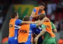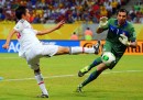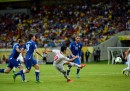 L’Italia ha battuto il Giappone 4-3 nella seconda partita del Girone A della Confederations Cup, guadagnando così matematicamente la qualificazione alle semifinali (insieme al Brasile, che ha sconfitto 2-0 il Messico). La partita è stata molto divertente e complessivamente il Giappone ha giocato meglio, dominando il primo tempo e andando in vantaggio 0-2 (soprattutto Kagawa e Honda hanno giocato benissimo). Poi l’Italia ha fatto gol con Daniele De Rossi, ha preso un palo con Emanuele Giaccherini e nel secondo tempo ha pareggiato con un autogol di Uchida, procurato da una bella azione di Giaccherini.