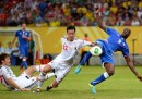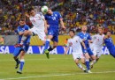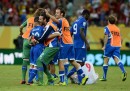 Una volta sul 2-2 l’Italia è passata in vantaggio con un rigore con Mario Balotelli (sia il rigore per l’Italia che uno assegnato al Giappone nel primo tempo erano inesistenti). Il Giappone ha fatto 3-3 con Okazaki e ha rischiato di segnare di nuovo: in un’azione è riuscito a colpire sia il palo che la traversa. A pochi minuti dalla fine però un gran passaggio di De Rossi ha trovato libero in area Marchisio, che ha servito Giovinco solo davanti al portiere: 4-3. L’Italia giocherà la terza partita del girone – valevole per decidere il primo posto, contro il Brasile – il 22 giugno a Salvador de Bahia.
