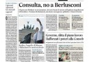 I giornali di oggi aprono tutti con la decisione della Corte Costituzionale di bocciare il ricorso presentato da Silvio Berlusconi sull’applicazione del legittimo impedimento durante le udienze del processo Mediaset, che arriva così in Cassazione per il giudizio finale. Fa eccezione solo Libero, che titola chiedendo le dimissioni del ministro Idem, accusata di false dichiarazioni per pagare meno tasse sulla casa. I quotidiani sportivi aprono con la divertente vittoria dell’Italia per 4-3 sul Giappone nella seconda partita della Confederations Cup.