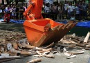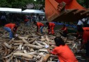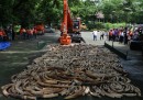 Le zanne di elefante distrutte nelle Filippine