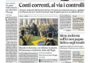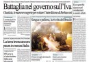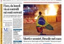 I giornali di oggi aprono con notizie diverse: molti titolano sulle manifestazioni di protesta e gli scontri in Brasile, il Corriere della Sera e il Messaggero aprono con la possibilità per il fisco di accedere da lunedì ai dati dei conti correnti bancari, Repubblica, il Sole 24 Ore e il Giornale si occupano della eventuale decisione del governo di bloccare l’aumento dell’IVA, decisione che per il Giornale è decisiva per la sopravvivenza del governo, mentre il Secolo XIX titola sulla scossa di terremoto avvertita ieri nel Nord Italia. I giornali sportivi presentano la partita di Confederations Cup di stasera fra Italia e Brasile fra i timori per l’ordine pubblico e l’ipotesi di sospensione della manifestazione.