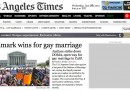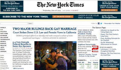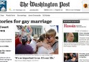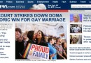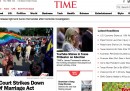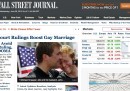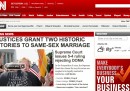 Tutti i maggiori siti di news degli Stati Uniti aprono le loro homepage mercoledì pomeriggio con titoli e foto dedicati alle sentenze della Corte Suprema emesse oggi e che riguardano il matrimonio tra persone dello stesso sesso.