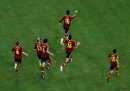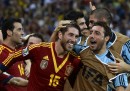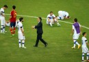 L’Italia ha giocato benissimo nel primo tempo, schiacciando la Spagna, costruendo molte occasioni per fare gol ma non riuscendoci (mancava Balotelli, il miglior attaccante italiano, per infortunio). Anche nel secondo tempo l’Italia ha complessivamente giocato meglio, pur senza dominare nettamente come nel primo. Ai supplementari invece la Spagna è passata all’attacco, ma l’Italia ha resistito e ha anche colpito un palo con Giaccherini. L’Italia giocherà la finale per il terzo posto contro l’Uruguay.