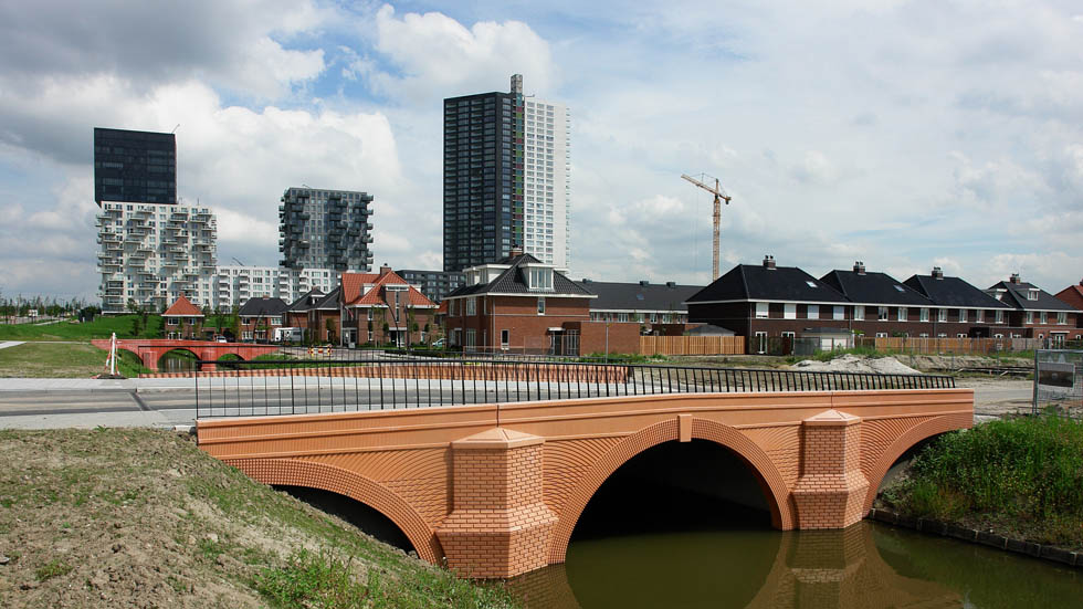 Il designer e artista olandese Robin Stam ha deciso di progettare i ponti rappresentati e di costruirli, riprendendone il disegno, i colori e le proporzioni, nella periferia di Spijkenisse, nel sud dell’Olanda, nell’ambito di un nuovo progetto di edilizia. Il progetto, ancora in corso, è raccontato in un tumblr, De Bruggen Van Europa, I ponti dell’Europa, dove si vedono i progetti e i ponti in costruzione. Nel sito dello studio di Stam si possono vedere invece altri progetti interessanti.
