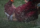 Te giri e abbracci la prima cosa che te se move nei paraggi prima che quella cosa abbracci te. Tipo un signore antico e gentile casuale compagno dele sventure d’annata, ar quale finarmente strizzi tutte le vertebre, ce salti e lo tieni saltando, e quando lo molli pe guardatte in faccia coll’artri millemila lo fai piano, pe paura d’avé fatto danni sparpajando sui seggiolini costolette de tifoso felicemente fratturato.
