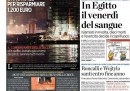 I giornali di oggi aprono con notizie diverse: le manifestazioni di sostegno al presidente deposto Morsi in Egitto e gli scontri con l’esercito, che hanno provocato diversi morti, sono in apertura su Repubblica, il Manifesto e il Secolo XIX, la Stampa e il Mattino titolano invece sul disegno di legge presentato dal governo Letta per abolire le province, l’Unità, il Sole 24 Ore, il Tempo e la Padania commentano i dati Istat sui consumi, in calo rispetto all’anno precedente, il Corriere della Sera, Avvenire, l’Osservatore Romano e Europa aprono sulla prima enciclica di Papa Francesco, scritta “a quattro mani” con Papa Benedetto XVI, e il Messaggero si occupa del confronto sull’IMU fra Letta, che intende riformarla, e il PDL che ne sostiene invece l’abolizione.