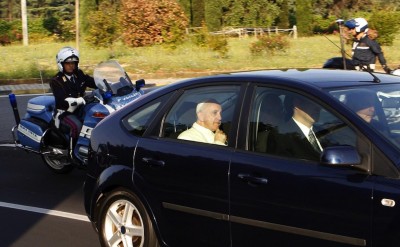 Le foto della visita di Bergoglio e della corona di fiori gettata in mare per i migranti