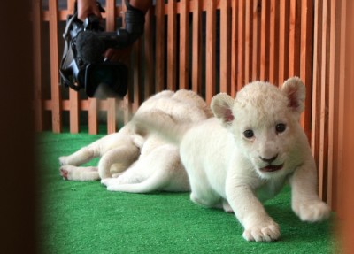 Sabato 13 luglio sono stati presentati al pubblico del parco di Himeji, in Giappone, sette cuccioli di leone bianco, nati tra il 6 e il 30 giugno scorsi. I cuccioli sono nati da tre diversi esemplari di leone bianco del Sudafrica.