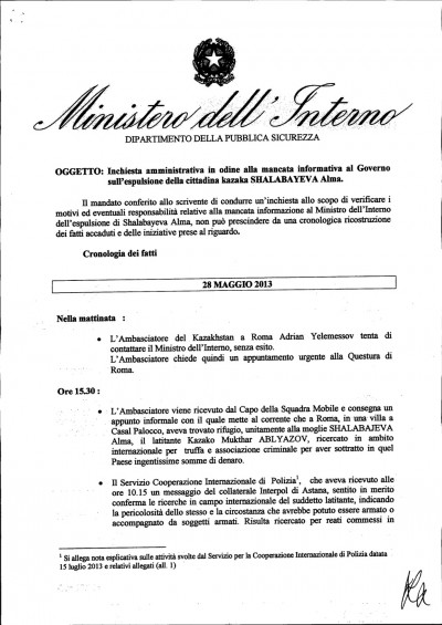 La relazione Pansa sull’espulsione di Alma Shalabayeva