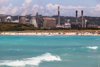 Questa storia in Italia ricorderà a molti una situazione simile a Rosignano Solvay, un piccolo comune in provincia di Livorno. Nei pressi della cittadina è presente un grosso stabilimento di Solvay, un’azienda belga che produce materiali chimici e farmaceutici (come la soda o il bicarbonato), che nel 1912 dopo aver avviato lo stabilimento ci costruì attorno il paese, bonificando i terreni e costruendoci dei complessi residenziali dove vennero ad abitare gli operai e gli impiegati assunti dall’azienda. Solvay ha sempre scaricato in mare gli scarti chimici risultati dalla produzione di soda, dando al tratto di costa vicino allo stabilimento una colorazione da “spiaggia tropicale”: sabbia fine e bianchissima, e colore del mare azzurro chiaro.