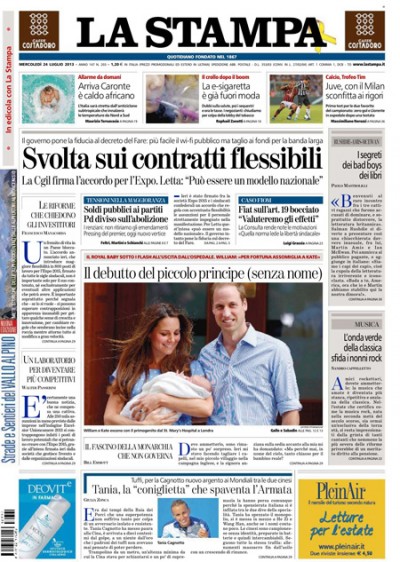 I contratti flessibili per l'Expo 2015, la FIAT contro la Consulta, e il royal baby torna a casa