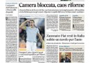 Anche oggi i giornali hanno notizie diverse in apertura: la Stampa e l’Unità si occupano del richiamo del Presidente del Consiglio Letta ai deputati del PD a sostenere con decisione l’azione del governo, il Corriere della Sera apre sulla situazione in Egitto, dove sembra crescere il rischio di una guerra civile, il Messaggero e Europa seguono l’attività del Parlamento con il voto di fiducia al “decreto del fare” e l’ostruzionismo del Movimento 5 Stelle che fa slittare l’esame di altri provvedimenti, Repubblica torna sulla legge sul voto di scambio, che dovrebbe essere modificata dopo l’allarme lanciato ieri dal quotidiano, e Libero si lancia in una campagna contro la “casta dei giudici”.