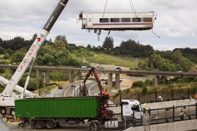 Giovedì anche il primo ministro spagnolo, Mariano Rajoy, è andato a Santiago per visitare il tratto di ferrovia in cui il treno dell’alta velocità Alvia è deragliato, facendo finire rovinosamente alcune carrozze contro un alto muro di contenimento in una curva già da tempo giudicata “difficile” da tecnici ed esperti ferroviari. Il macchinista che al momento dell’incidente stava conducendo il treno è agli arresti in ospedale, dove è ricoverato per alcune ferite lievi subite durante il deragliamento.