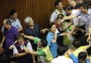 Giovedì 1 agosto alcuni membri del Parlamento di Taipei, la capitale di Taiwan, si sono scontrati duramente tra loro, arrivando anche a diversi scontri fisici all’interno dell’aula, dove si stava discutendo sull’istituzione di un referendum per l’apertura di una nuova centrale nucleare. Alcuni parlamentari hanno lanciato bottiglie e altri oggetti e hanno successivamente occupato i banchi della presidenza, cercando anche di barricarsi all’interno dell’aula.