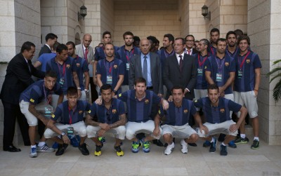 Il Barcellona ha infatti predisposto un programma identico per le due tappe di questo “Peace Tour”: nessuna partita, due corsi con scuole calcio del luogo seguite da mini allenamenti a porte aperte, e visite lampo in luoghi significativi dei due paesi. Il Generale ci spiega l’enorme dispositivo di sicurezza messo in piedi per ricevere il Barça, e con sollievo ci comunica che la squadra non alloggerà in Palestina perchè “every minute is a risk”. Messa da parte la logistica, il Generale si fa Ministro e fa riferimento all’organizzazione lunga quasi un anno, parla di quanto tutti sperino sinceramente che l’atmosfera portata da questa doppia visita possa fungere, nel suo piccolo, da ponte tra i due paesi. Ma ci dice anche del suo rifiuto (“they pressed me a lot, but no means NO”) alla prima proposta dei catalani di giocare un’amichevole contro una squadra mista israelo-palestinese, perché proprio per la grande passione dei palestinesi verso il calcio, questo gioco non può essere uno specchio deformante della realtà: la deve riflettere per quella che è.