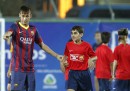 Quando il tempo dell’addestramento finisce, il rompete le righe comporta l’ovvia caccia all’autografo degli improvvisati allenatori, e lo stadio, che non ha mai smesso di invocare i nomi più rappresentativi della rosa, rivolge ai piccoli in uscita dal campo un grido simile a quello dell’ingresso in campo delle superstar spagnole. Sul terreno di gioco rimane la squadra che, agli ordini di Martino, prende parte al classico allenamento “di scarico” (24 ore prima hanno giocato contro il Santos e vinto per 8-0 il trofeo Gamper), di per sé poco spettacolare, ma che viene vissuto dagli spettatori alla stregua di un Italia-Germania 4-3. Un collega palestinese a bordo campo mi spiega: «Devi capire che non è mai successa una cosa simile, e che tutti quelli che sono qui sono certi che non rivedranno con i loro occhi la squadra che vedono sempre in tv: a meno che non decida di tornare qui, di sicuro loro in Spagna non possono andarci. È un momento unico».