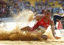 Tra le migliori foto sportive della settimana ce ne sono un paio di atleti in posa. Da soli – come quella del giocatore di basket Shabazz Muhammad, dei Minnesota Timberwolves – oppure con tutta la squadra, come i Northampton Saints, una squadra di rugby fotografata davanti a una villa nella campagna inglese. A parte gli atleti imbalsamati, ci sono partite di football con placcaggi tosti, gare di decathlon e rugbisti che si tuffano a corpo morto. E per finire, una foto di una partita di calcio in cima alle Ande tra un gruppo di venditrici del mercato di Lima.