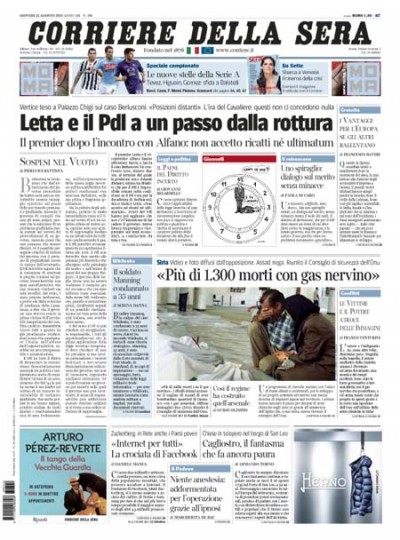 Le prime pagine di giovedì 22 agosto 2013