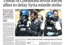 Dopo avere sostenuto per giorni la necessità di intervenire rapidamente in Siria e se necessario senza il sostegno delle Nazioni Unite, nel tardo pomeriggio di mercoledì 28 agosto il primo ministro britannico, David Cameron, è stato costretto a cambiare sensibilmente la propria linea in vista della discussione parlamentare sulla crisi siriana in programma per giovedì. Il suo passo indietro, definito “umiliante” da diversi osservatori e sottolineato dalle prime pagine dei quotidiani di oggi, lo costringe ad aspettare un parere del parlamento britannico non prima della settimana prossima, e potrebbe rallentare il piano di intervento militare in Siria degli Stati Uniti, che continuano a dirsi convinti che il regime del presidente siriano Bashar al Assad abbia utilizzato armi chimiche nell’attacco della scorsa settimana a est di Damasco, dove sono morte centinaia di persone tra cui molti bambini. In una intervista televisiva, mercoledì lo stesso presidente statunitense Barack Obama ha detto di essere “sicuro che dietro gli attacchi chimici ci sia la Siria”, ma di stare ancora valutando la reazione più appropriata.
