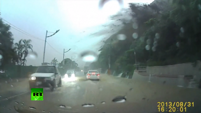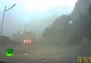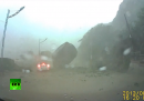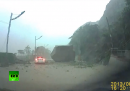 Una videocamera montata sul cruscotto di un’automobile ha ripreso una grande frana, causata dal brutto tempo, che si è verificata lungo uno strada di Taiwan. Il video mostra un’auto che per poche decine di centimetri non viene travolta da un enorme masso, distaccatosi durante la frana. Nell’incidente nessuno è rimasto ferito.