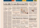 La maggior parte dei giornali di oggi apre con l’intervento del Presidente del Consiglio Letta che, dopo le preoccupazioni della Banca Centrale Europea e dell’Unione Europea sui conti pubblici italiani, ha dichiarato che l’Italia non supererà i limiti concordati con l’Europa. Repubblica e il Giornale rimangono invece sulla decadenza da senatore di Berlusconi, il Manifesto e la Padania si occupano della chiusura degli stabilimenti del gruppo ILVA, e il Secolo XIX titola sulle accuse del segretario generale dell’ONU alla Siria per l’uso delle armi chimiche. I quotidiani sportivi presentano il ritorno del campionato, che vede per oggi la partita fra Inter e Juventus.