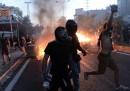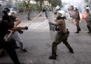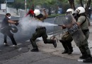 Durante la manifestazione, organizzata da diversi gruppi di sinistra, ci sono stati momenti di forte tensione con la polizia cui sono seguiti scontri con il lancio di pietre e altri oggetti verso gli agenti, che hanno risposto usando gas lacrimogeni. Le proteste hanno interessato anche altre zone della Grecia, oltre quella di Atene. La polizia ha fermato più di 75 persone per accertamenti, in seguito alle violenze (tra i fermati c’è un ufficiale di marina italiano, accusato di aver puntato una pistola contro i manifestanti: lui dice che stava difendendo sua moglie incinta in macchina). Il leader di Alba Dorata, Nikolaos Michaloliakos, ha escluso qualsiasi legame tra il suo partito e l’attacco in cui è stato ucciso Fyssas. La polizia ha comunque arrestato un uomo di 45 anni, che secondo la stampa greca avrebbe ammesso di avere accoltellato Fyssas (e avrebbe gettato la sua tessera di Alba Dorata prima dell’arrivo dei poliziotti). In serata è circolato anche il nome dell’uomo, che però non è stato ufficialmente confermato.