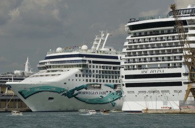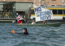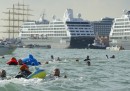 Sabato 21 settembre un gruppo di attivisti del comitato “No-Grandi Navi” di Venezia ha manifestato contro il passaggio delle navi da crociera nella laguna. I manifestanti sono rimasti in acqua per un’ora nel canale della Giudecca, nel giorno di massimo afflusso delle navi: dodici passaggi di grandi navi in 24 ore.