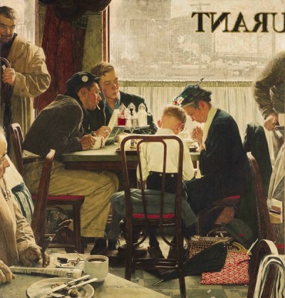 Norman Rockwell, artista molto popolare nel raccontare l’America quotidiana, ha realizzato durante la sua carriera ben 322 copertine per il Saturday Evening Post e alcune di queste sono diventate le sue tavole più famose, tra cui “The Tattoo Artist” e quella con la prima versione di “Rosie the riveter“. I tre dipinti messi in vendita sono sicuramente tra i suoi più popolari: soprattutto “Saying Grace”, che nel 1955 fu votata come la copertina più bella di Rockwell in un sondaggio tra i lettori del Saturday Evening Post. Potrebbe essere venduta a una cifra tra i 15 e i 20 milioni di dollari, superando il record di vendita di “Breaking Home Ties”, un’altra opera di Rockwell venduta nel 2006 per 15,4 milioni di dollari. Rockwell venne pagato 3.500 dollari per “Saying Grace”, che apparve sulla copertina del Saturday Evening Post del 24 novembre 1951.